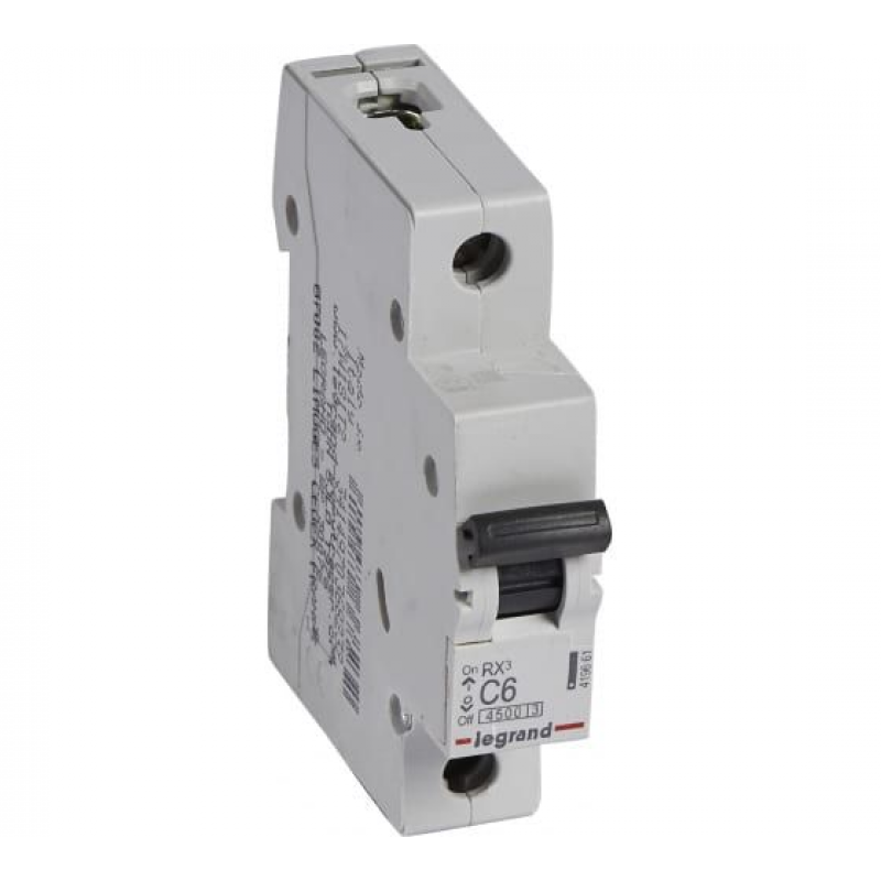 Выключатель автоматический LEGRAND RX3 1П 6A. Однополюсный автоматический выключатель из серии RX3 от Legrand, рассчитанный на номинальный ток 6А, защищает электрическую цепь от перегрузок и коротких замыканий. Характеристика срабатывания C, делает его идеальным для использования в цепях с умеренными пусковыми токами. Отключающая способность составляет 4.5 кА, что обеспечивает надёжное срабатывание при возникновении аварийной ситуации. Предназначен для установки на DIN-рейку, занимает один модуль. Корпус устройства имеет степень защиты IP20, что подходит для использования в сухих помещениях. Вес составляет 0.143 кг, производится в России.
