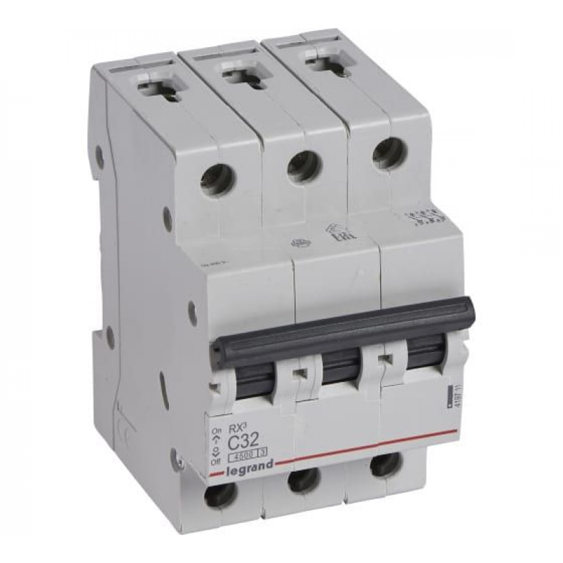 Выключатель автоматический LEGRAND RX3 3П 32A. Трёхполюсный автоматический выключатель серии RX3 от Legrand с номинальным током 32А, предназначен для защиты электрических цепей от перегрузок и коротких замыканий. Оснащён характеристикой срабатывания C, что делает его подходящим для цепей с умеренными пусковыми токами. Отключающая способность — 4.5 кА, обеспечивает надежное отключение при аварийных ситуациях. Устанавливается на DIN-рейку, занимает три модуля. Подходит для использования в помещениях с защитой IP20. Вес устройства — 0.414 кг, страна производства — Россия.