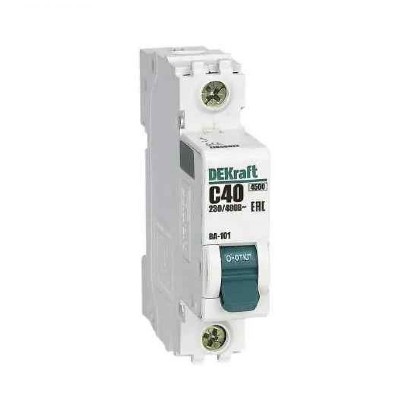 Выключатель автоматический DEKraft 1П 40А. Этот однополюсный автоматический выключатель DEKraft серии ВА-101 номиналом 40А разработан для эффективной защиты цепей от перегрузок и коротких замыканий. С характеристикой срабатывания C он подходит для цепей с пусковыми токами. Отключающая способность достигает 4,5 кА. Компактный, занимает 1 модуль на DIN-рейке. Производитель — Delixi Electric Ltd, Китай, обеспечивший степень защиты IP20, что допускает его использование в сухих помещениях. Вес устройства — 0.086 кг.