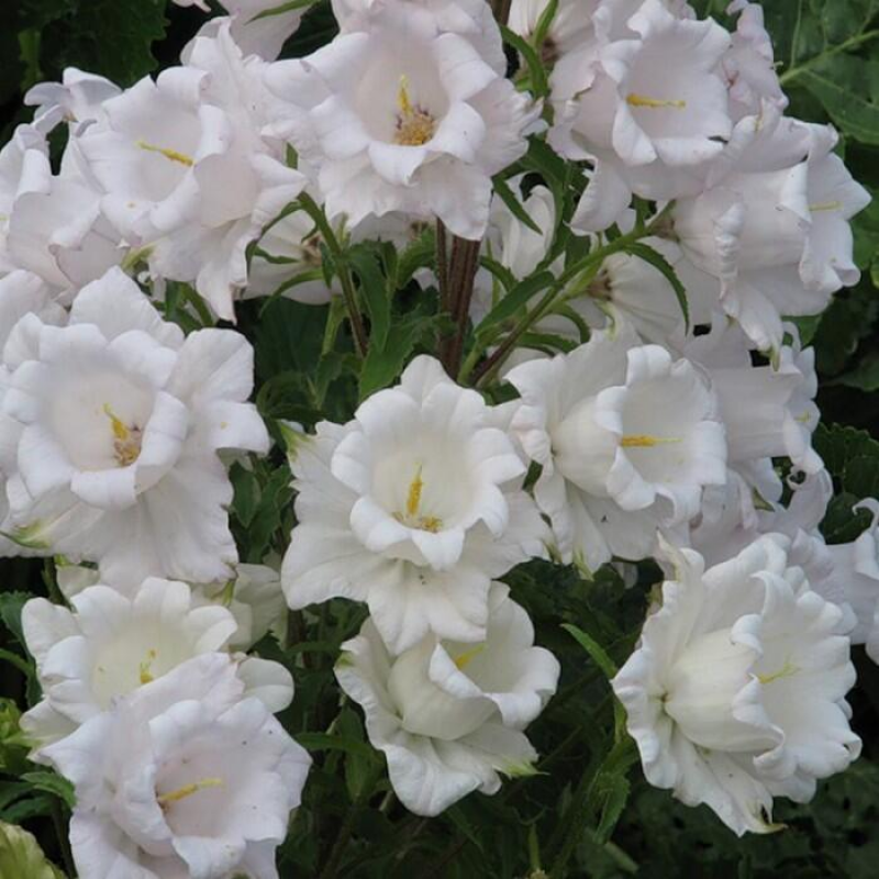 Цветки крупные, махровые, диаметром 5-7 см. Выделяется среди других колокольчиков эффектным двойным околоцветником.