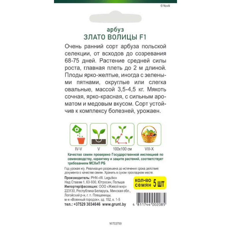 Очень ранний сорт арбуза польской селекции, от всходов до созревания 68-75 дней.