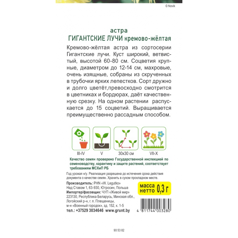 Кремово-желтая астра из сортосерии Гигантские лучи.
