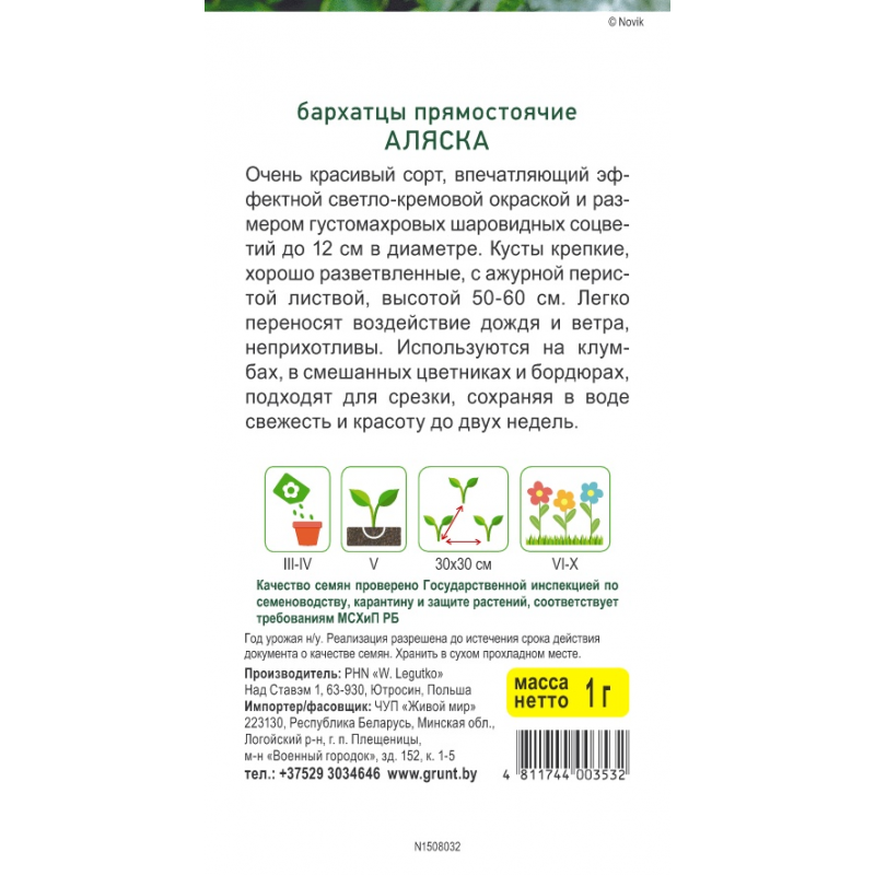 Кусты крепкие, хорошо разветвленные, с ажурной перистой листвой, высотой 50-60 см.