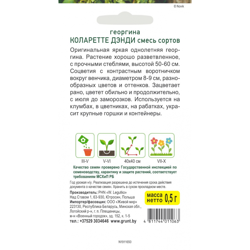 Растение хорошо разветвленное, с прочными стеблями, высотой 50-60 см. Соцветия с контрастным воротничком вокруг венчика, диаметром 8-9 см, разнообразных цветов и оттенков.