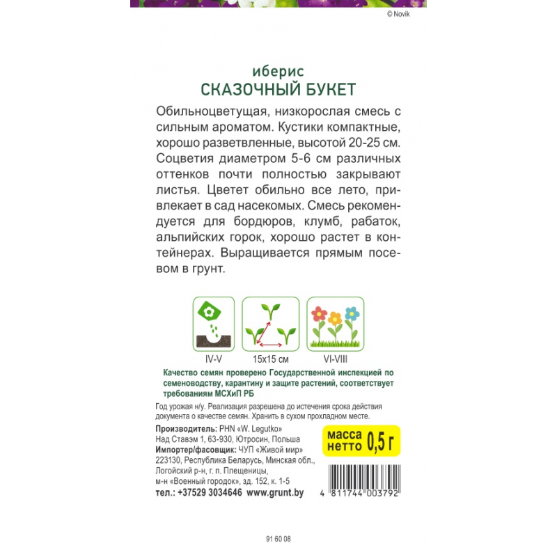 Цветет обильно все лето, привлекает в сад насекомых. Смесь рекомендуется для бордюров, клумб, рабаток, альпийских горок, хорошо растет в контейнерах.