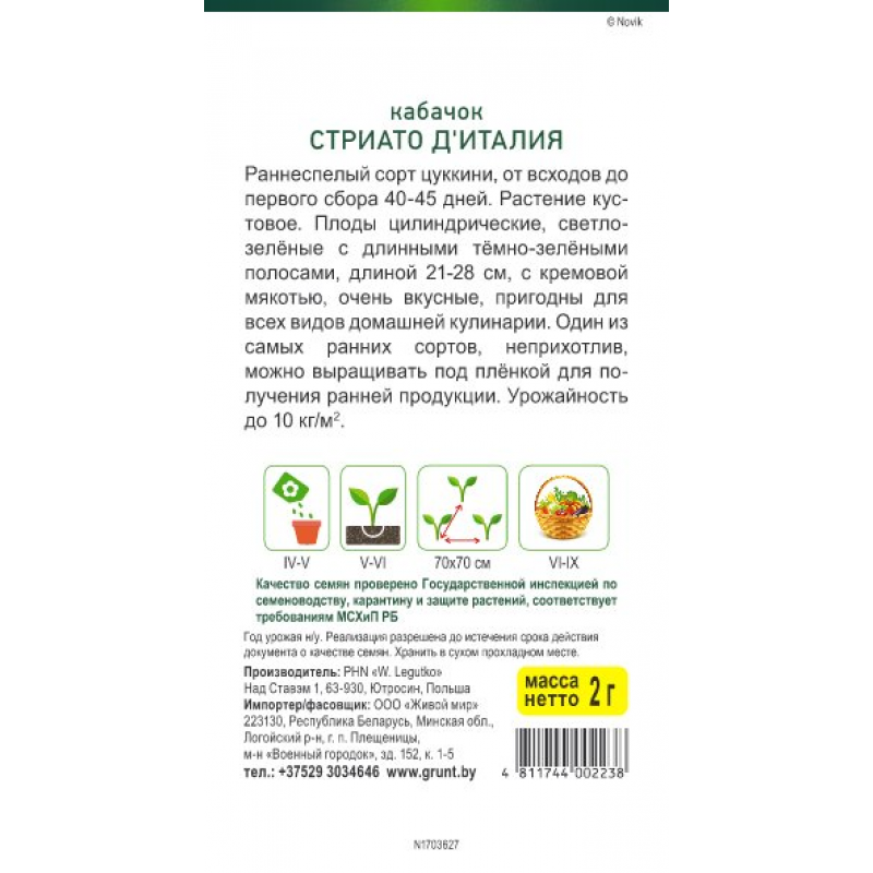 Раннеспелый сорт цукини, от всходов до первого сбора 40-45 дней.