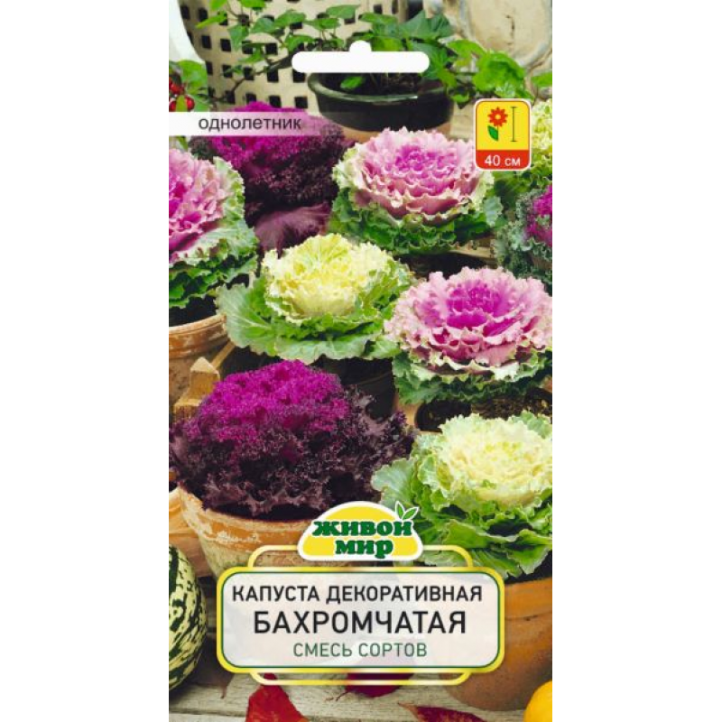 Выравненная смесь декоративной капусты с волнистыми листьями и центральной розеткой белого, розового или пурпурного цвета.