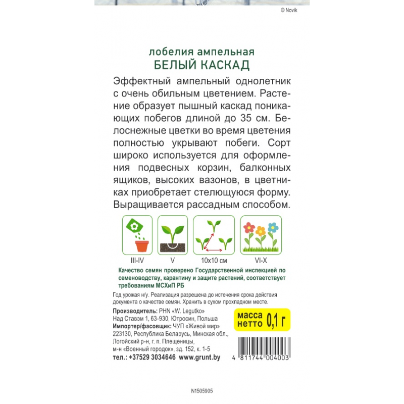 Растение образует пышный каскад поникающих побегов длиной до 35 см. Белоснежные цветки во время цветения полностью укрывают побеги.