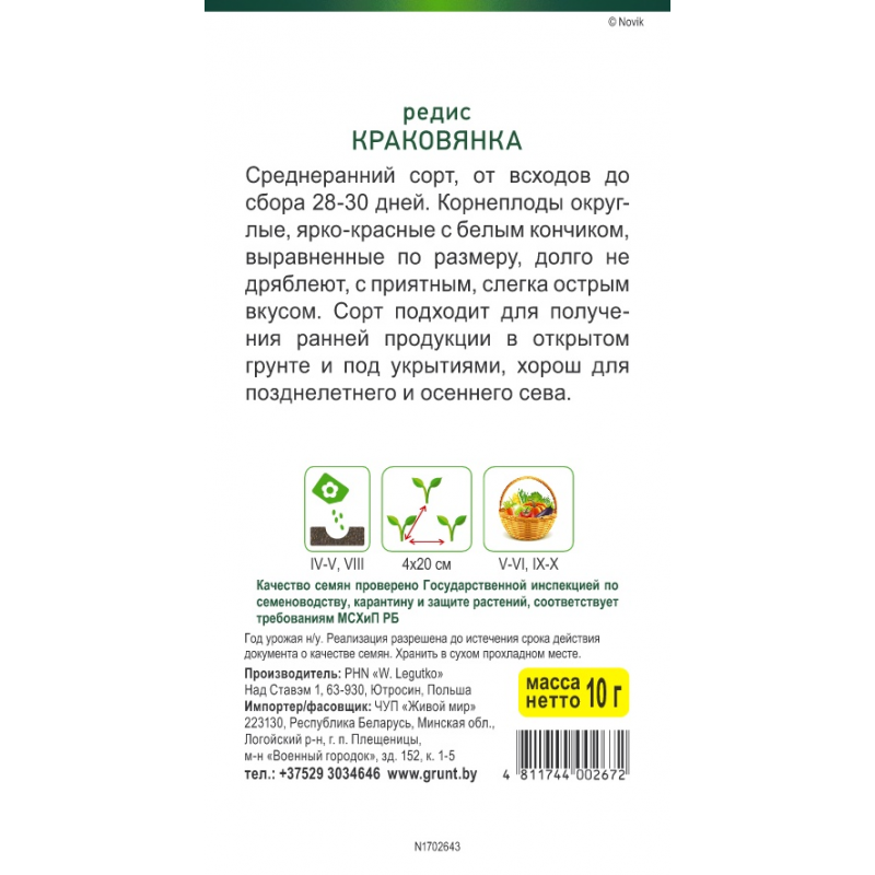 Корнеплоды округлые, ярко-красные с белым кончиком, выравненные по размеру, долго не дряблеют, с приятным, слегка острым вкусом.