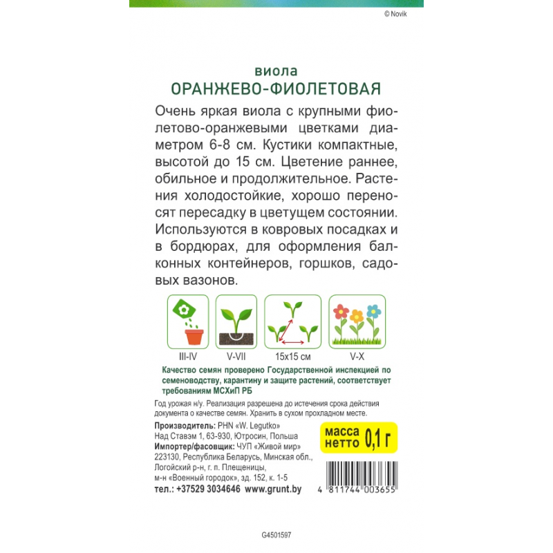 Очень яркая виола с крупными фиолетово-оранжевыми цветками диаметром 6-8 см.