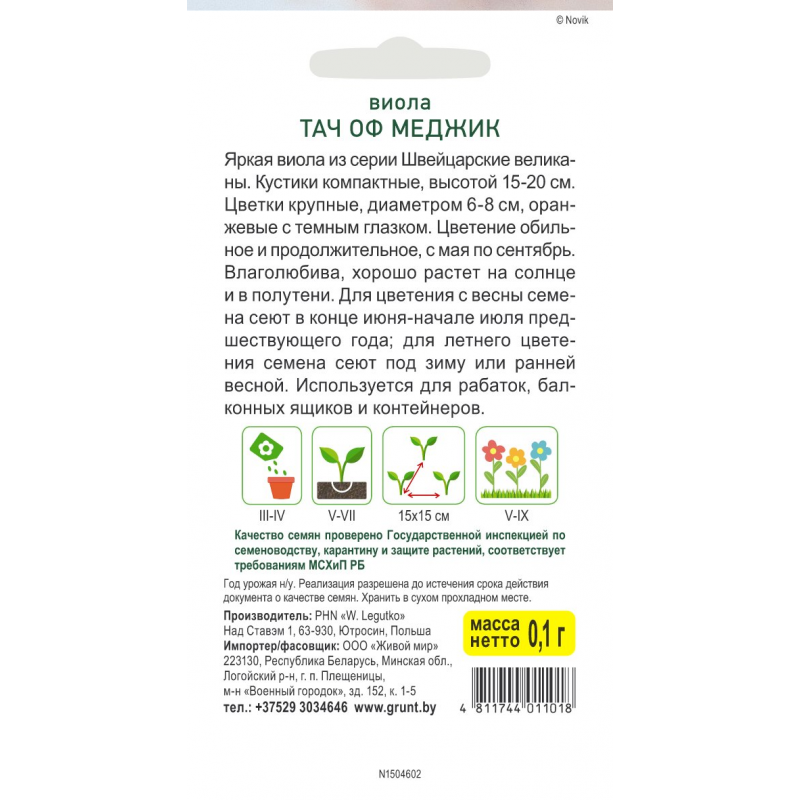 Кустики компактные, высотой 15-20 см. Цветки крупные, диаметром 6-8 см, оранжевые с темным глазком.