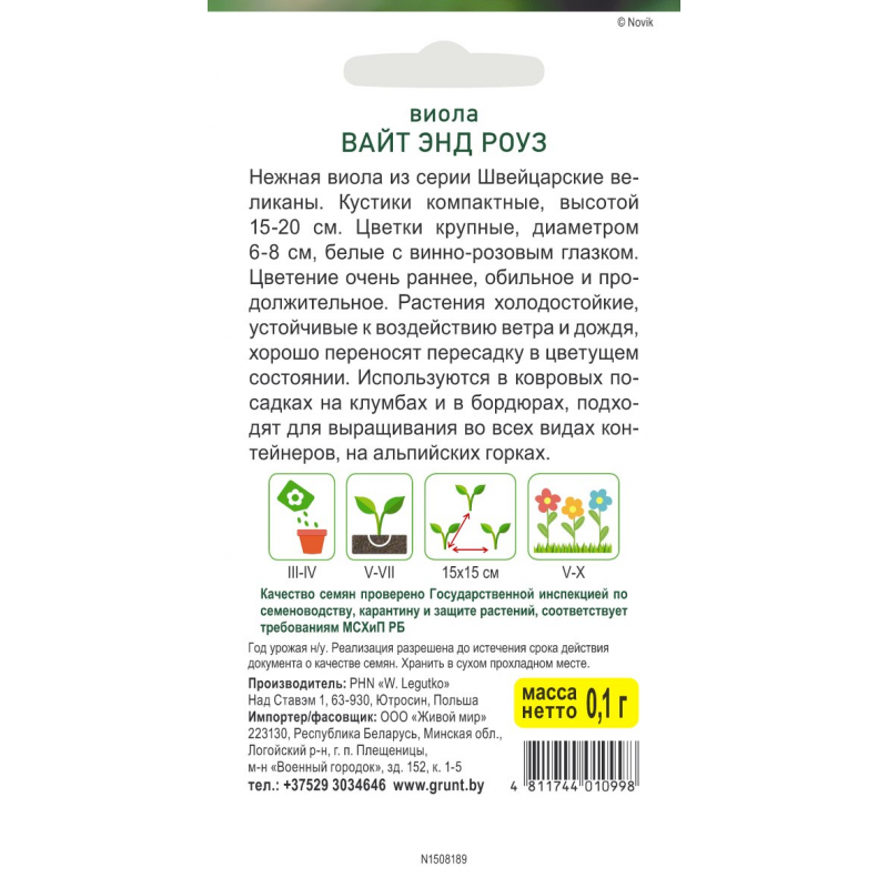 Кустики компактные, высотой 15-20 см. Цветки крупные, диаметром 6-8 см, белые с винно-розовым глазком.