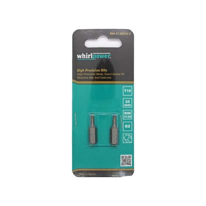 Бита WHIRLPOWER T10 25мм обеспечивает надежную и точную работу с крепежом Torx T10, делая ее отличным выбором для мастеров, занимающихся сборкой, ремонтом и обслуживанием.