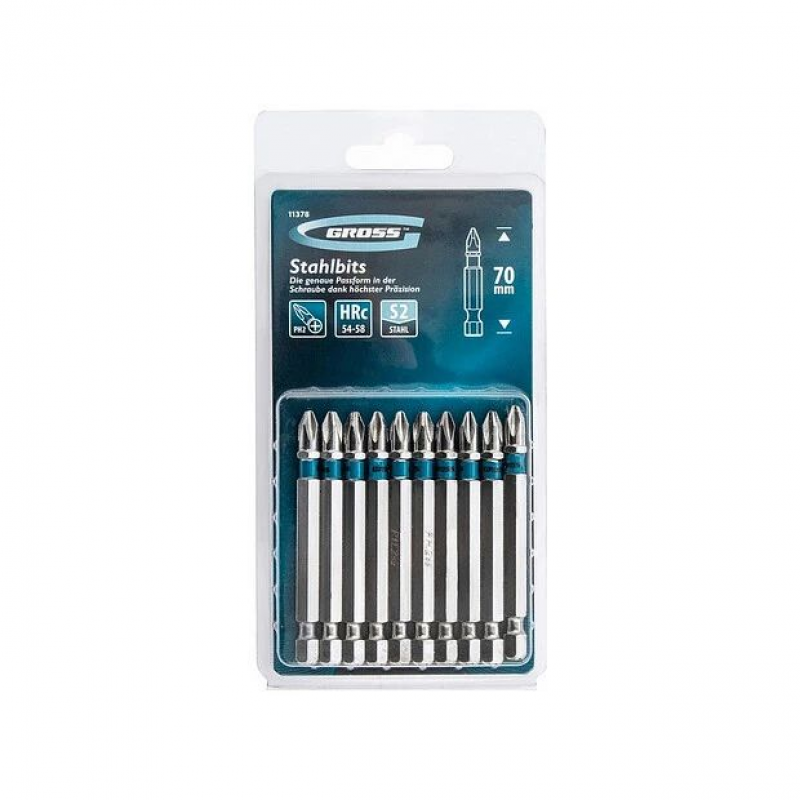 Бита изготовлена из стали S2, что обеспечивает длительный срок службы и устойчивость к высоким нагрузкам.